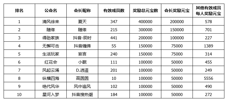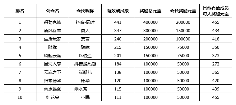 元宝奖励将在10个工作日之内发放至对应会长和有效成员账号中,发放后请在11月9日前前往大理龚彩云处领取。