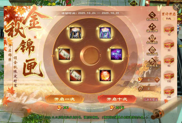 2025年10月24日——2025年10月31日期间,【金秋锦匣】活动上线,欢迎大侠参加!