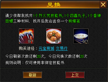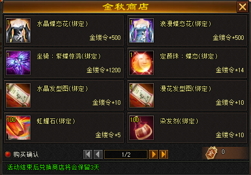 2、玩家可以使用非绑技能书加部分材料兑换“枫蝶笺”,也可消耗元宝购买抽奖道具“枫蝶笺”,即可开启锦匣,获取随机奖励。