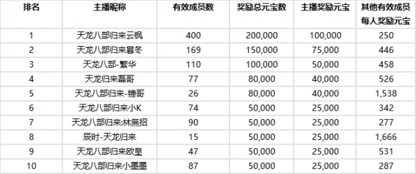 元宝奖励将在10个工作日之内发放至对应主播和有效成员账号中,发放后请在12月21日前前往大理龚彩云处领取。