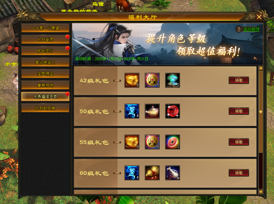 活动时间:11月21日更新维护后 - 12月21日 24:00