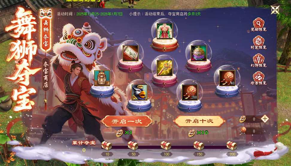 1、新增【舞狮夺宝】活动
