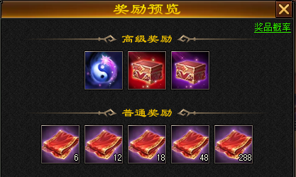 普通奖励:纳福锦缎*6、纳福锦缎*12、纳福锦缎*18、纳福锦缎*48、纳福锦缎*288