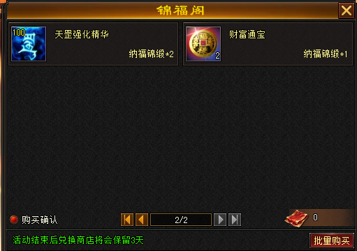 6、锦福阁:可使用纳福锦缎在兑换商店兑换指定道具。