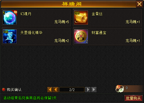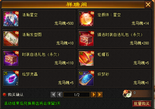 5、祥瑞阁:可使用龙马魄在兑换商店兑换指定道具。