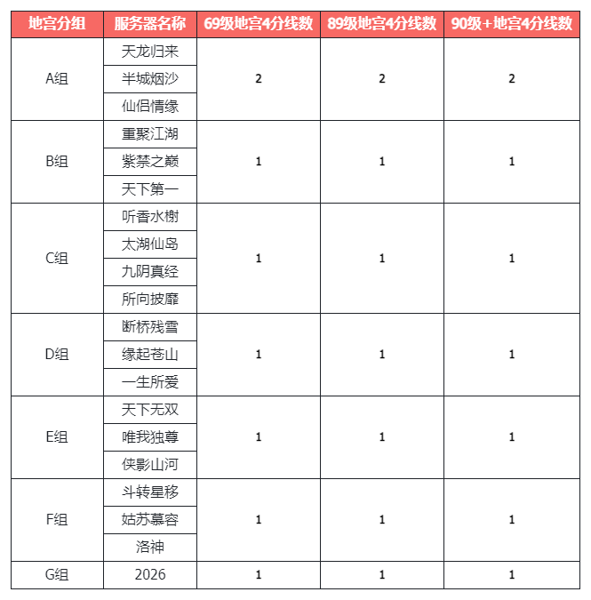 -跨服地宫四层分组如下: