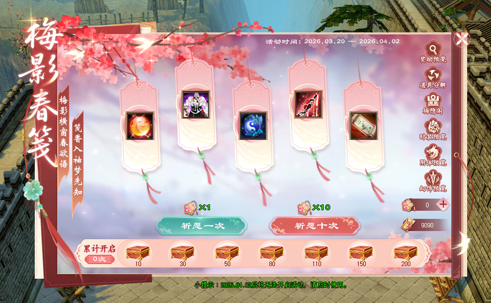 2、梅影春笺:新增梅影春笺活动。
