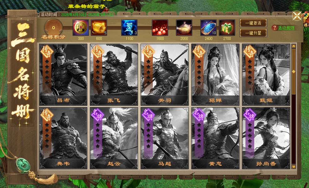 3、有可激活/升星名将时,可使用一键激活和一键升星(每次只升1星);