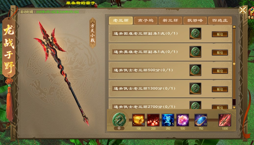 1、活动期间参与老三环、燕子坞、新三环、缥缈峰、四绝庄副本任务可获得不同数量的战龙纹玉;