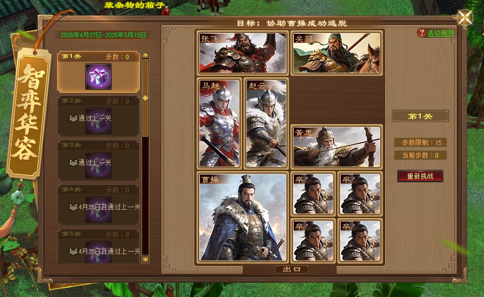 华容道奖励礼包:必得三国随机卡包*3,可随机获得珍兽技能书礼包、天罡强化精华、金蚕丝、财付通元
