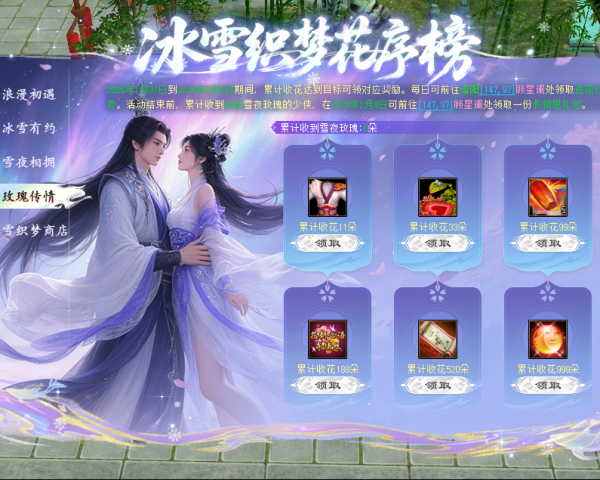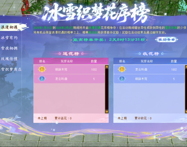 3、新增活动:冰雪织梦花序榜